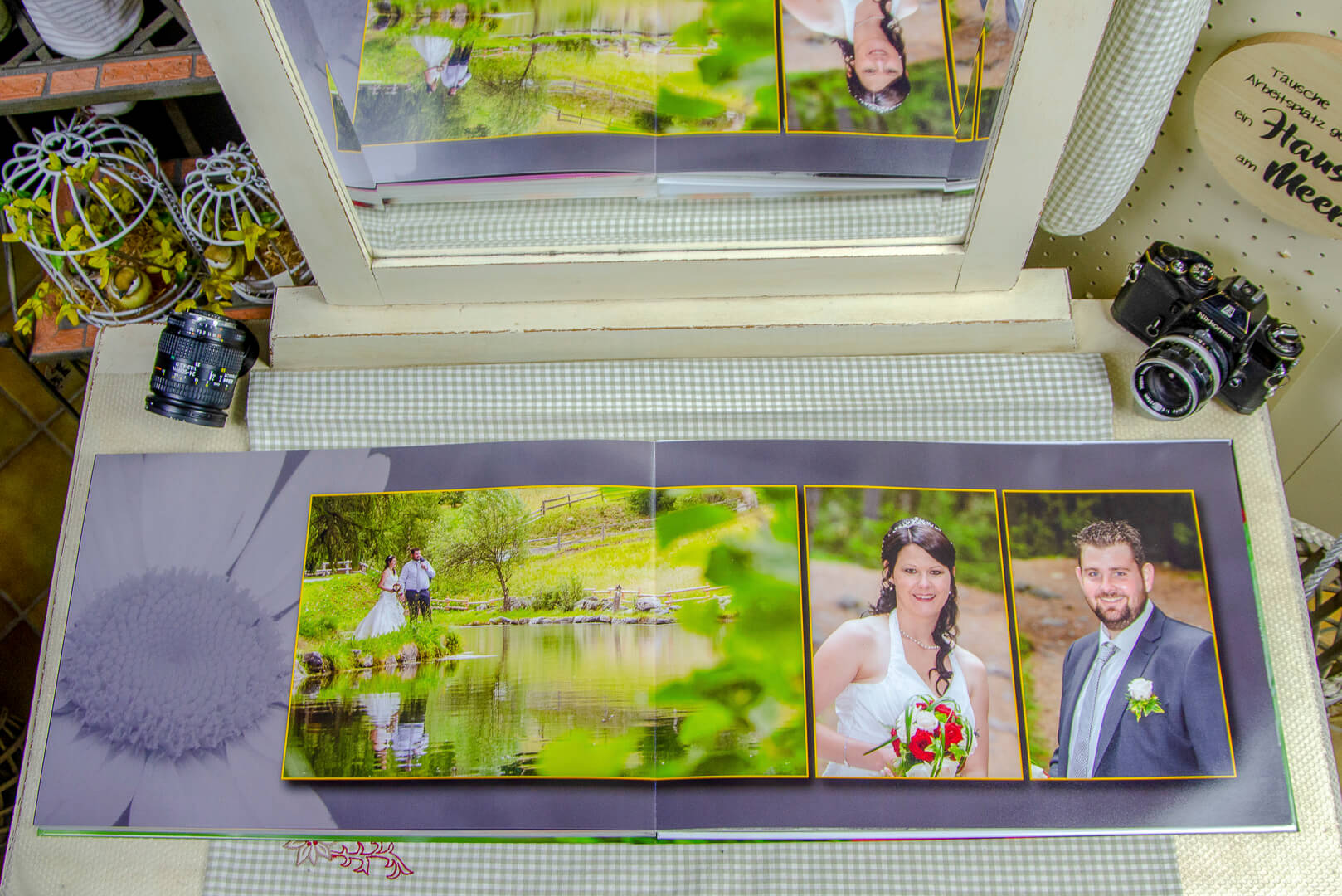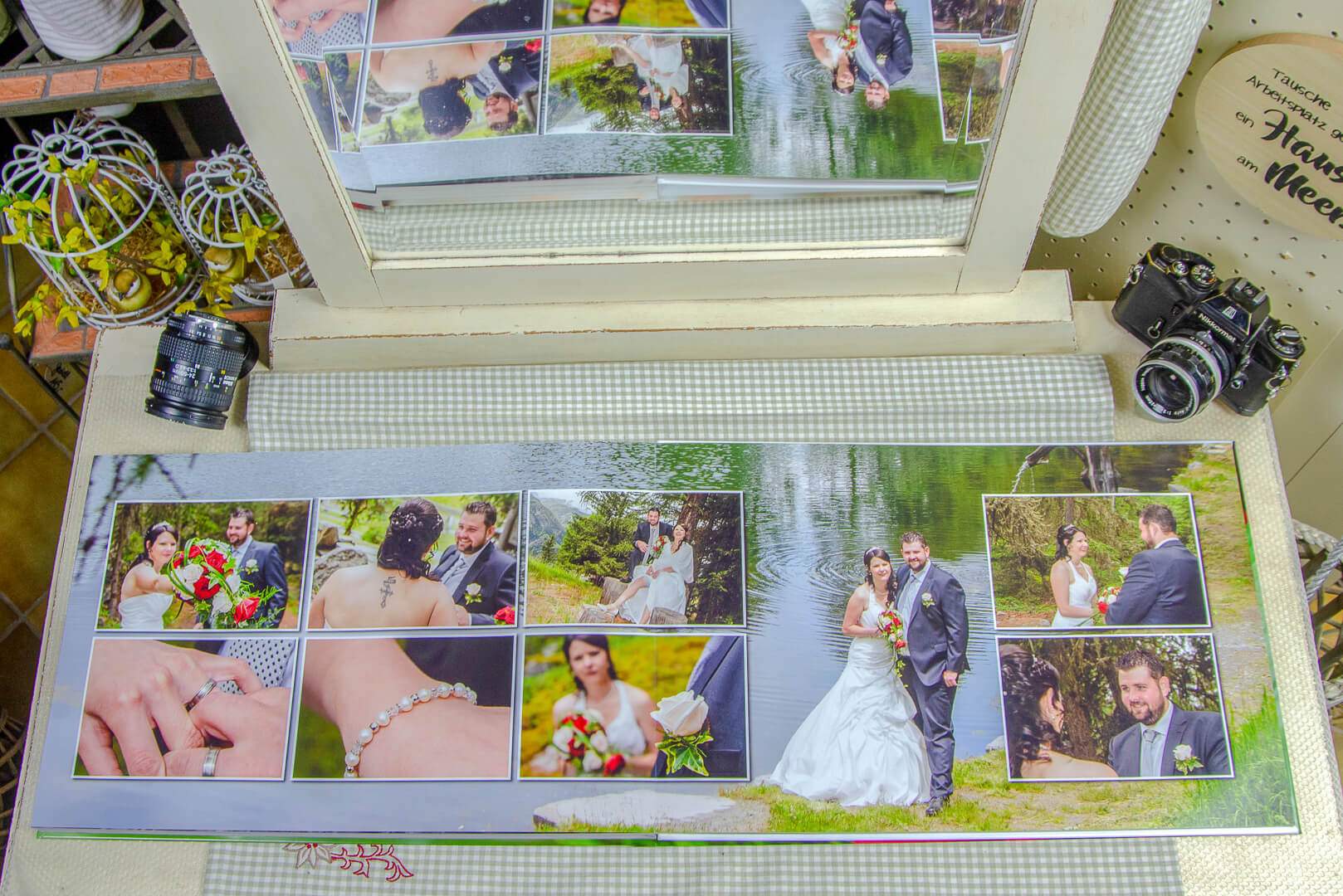 Auf einer Doppelseite hat man die Möglichkeit die Bilder auf einer Fläche von 29.8 x 90.4cm zu platzieren. Uneingeschränkte Möglichkeiten Ihr proffesionelles Album zu gestalten. Mit einem speziellen Verfahren haben wir die Möglichkeit, bis zu 150 Seiten für ein Buch zu erstellen.